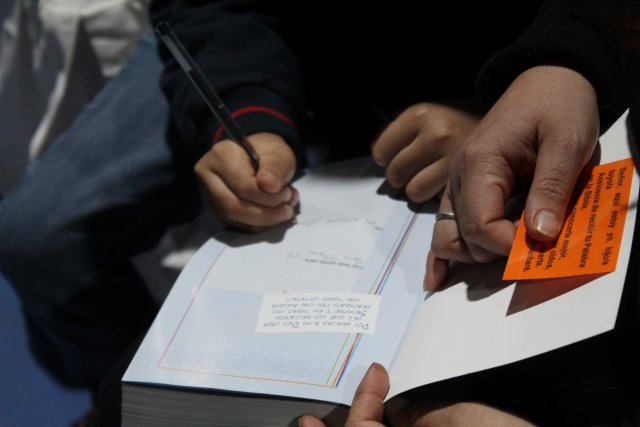 En un momento muy especial de la ceremonia, las mamás y papás fueron invitados a escribirles a sus hijas/os una dedicatoria en la parte de atrás del marcador que tiene la Biblia, bajo la primicia de que es el libro de inspiración de nuestra fe y que desde este momento en adelante las/os acompañará en muchas lecturas.