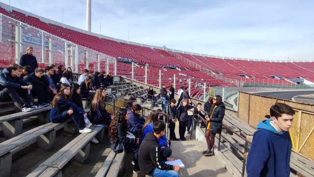 El viernes 28 de julio los III Medios A y B participaron en una salida pedagógica al Estadio Nacional y sus sitios de memoria. Esto se realizó en el contexto del estudio del golpe de Estado y la dictadura cívico-militar de 1973 a 1990, que están cursando en clases de Historia.