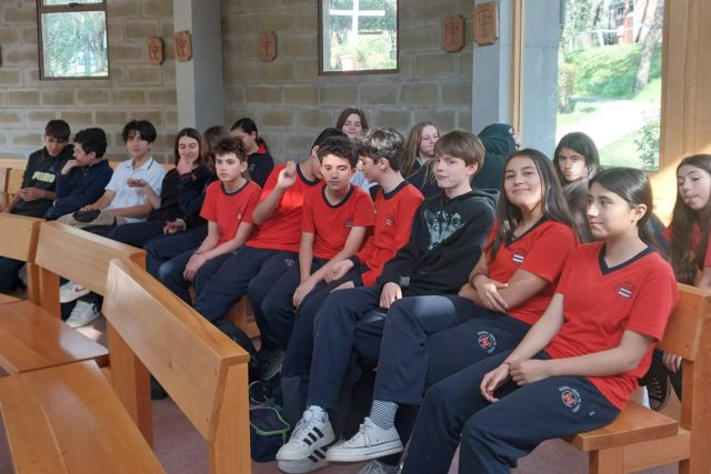 El miércoles 30 de agosto, las/os estudiantes de 7° Básico A y B participaron en el Encuentro con Cristo “La Amistad”, el cual se enmarca en el Programa Formativo NSDC. Esta instancia buscaba que las/os jóvenes vivieran una experiencia de fe y unidad, mientras exploraban el concepto de la amistad.