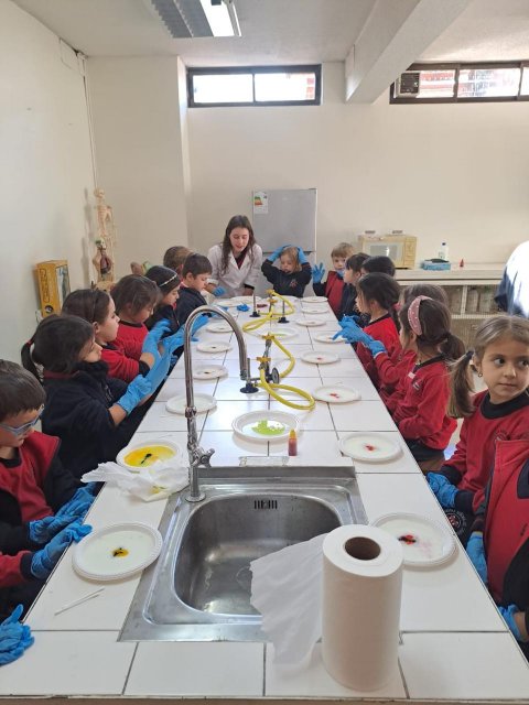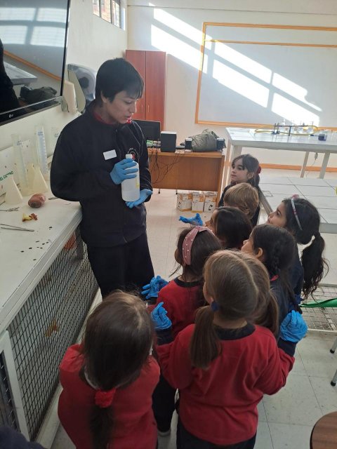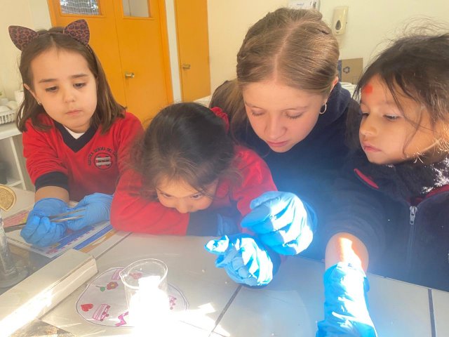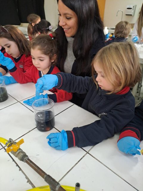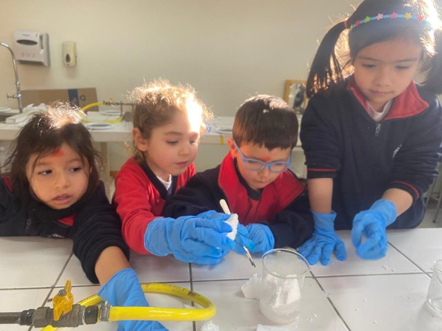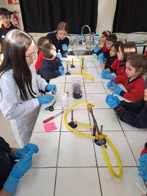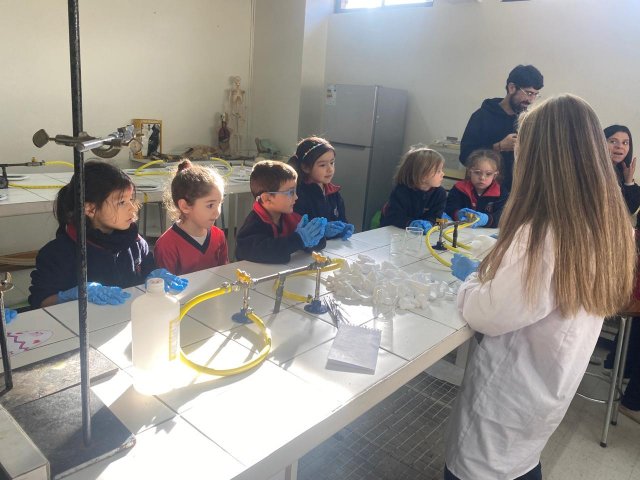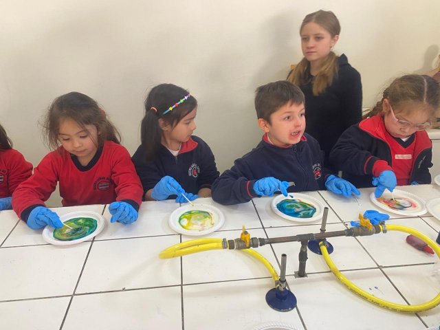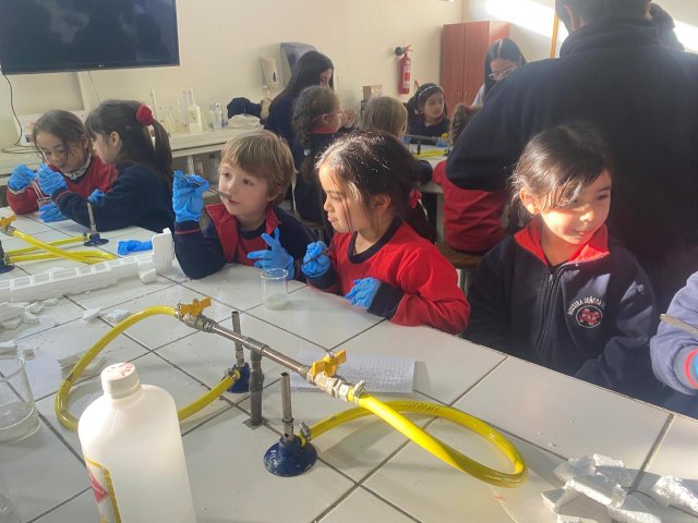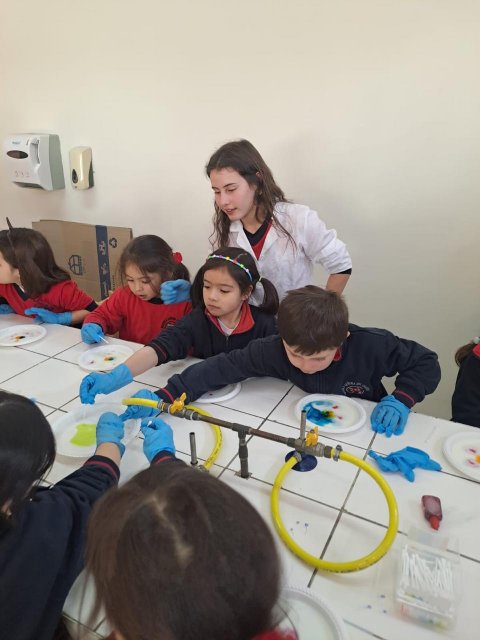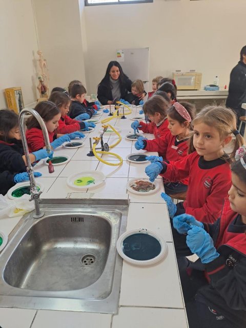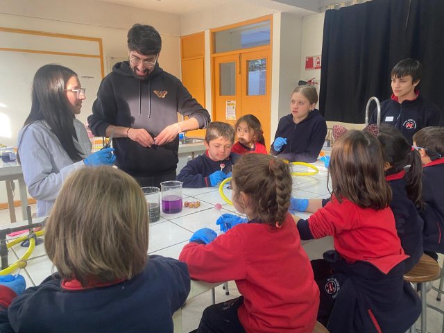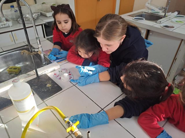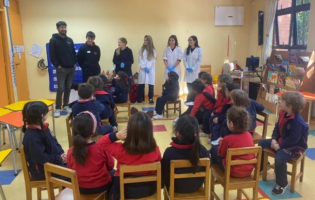 El lunes 9 de junio, se vivió una enriquecedora jornada de aprendizaje en el laboratorio del Colegio, donde estudiantes del Electivo de Biología Celular y Molecular de IV Medio, guiados por su profesor Nicolás Troncoso, recibieron a los niños y niñas del Taller Extraprogramático “Pequeños Investigadores” (Prekínder y Kínder), dirigido por la profesora Gabriela Cid.