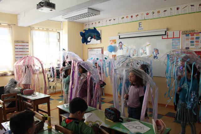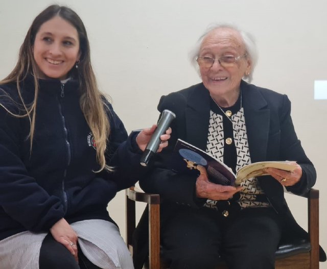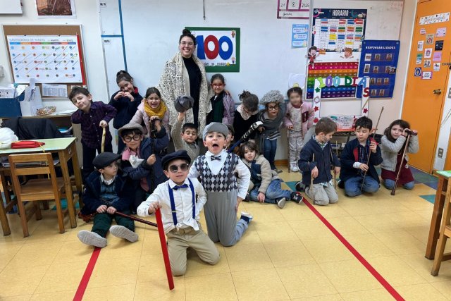 Durante la mañana, las/os estudiantes compartieron distintas actividades lúdicas y formativas. Primero, se realizó una presentación de disfraces junto a una muestra de la evolución de algunos objetos tecnológicos en los últimos 100 años. Luego, imaginaron el futuro a través de la creación de un banderín sobre cómo serán los niños/as de los próximos 100 años y confeccionaron lentes temáticos que dieron un toque creativo a la jornada. Finalmente, la abuela de la profesora Macarena Grassi, Hilda Pivet, que tiene 99 años, narró cuentos que invitaron a viajar en el tiempo, conectando generaciones a través de la palabra.