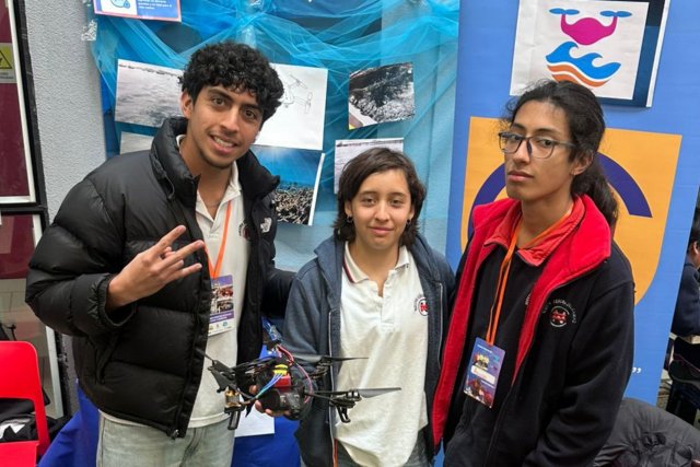 Los estudiantes Luciana Pardo, Rodrigo Sánchez y Arturo Salvo, de III Medio, están participando desde junio en la World Robot
